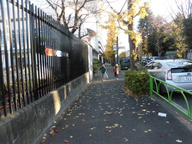 はやく登校した人が落ち葉掃きのお手伝いをしてくれています。