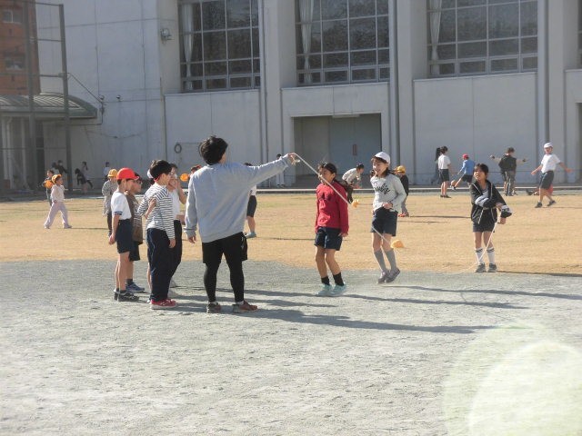 中休みになりました。お日さまが子どもたちを照らし小春日和の中休みです。