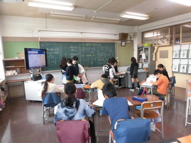4年生の授業は算数です。分数の学習です。