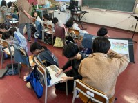 子どもたちが登校してきました。今日は北風が強くとても寒い朝です。寒がっている人がたくさんいます。