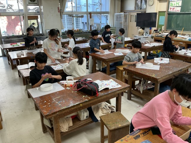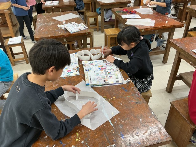 「光サンドイッチ」という単元で、ボール紙を使って、思い思いの形を作っていきます。