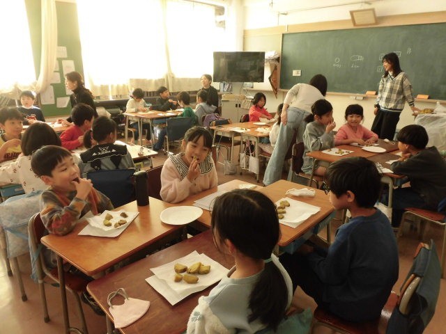 子どもたちはとても嬉しそうです。「おいしい。」「おいしい。」と、おいもを口にほおばる2年生です。