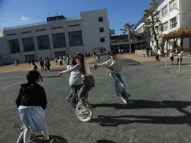 一輪車でメリーゴーランドを教えてもらいました。しかし、なかなかできません。くやしいです。練習します。