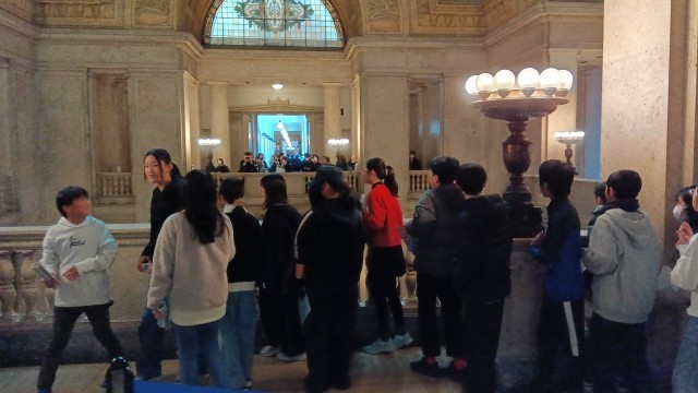国会参議院の見学です。今日は見学者が多いため、少し急ぎ足での見学となりました。本会議場をもう少しゆっくり見せてあげたかったです。