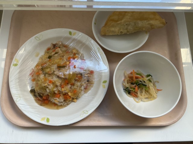 牛乳・あんかけチャーハン・ししゃものパリパリ揚げ・中華サラダ