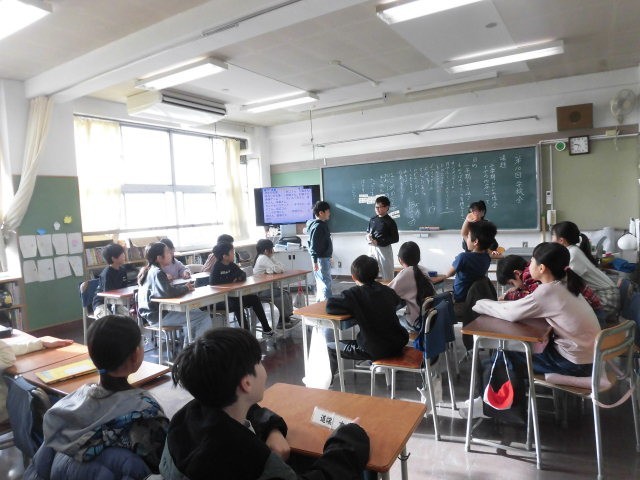 4年生の授業は学級活動です。学級会を開いています。議題は、学期末のお楽しみ会についてのようです。