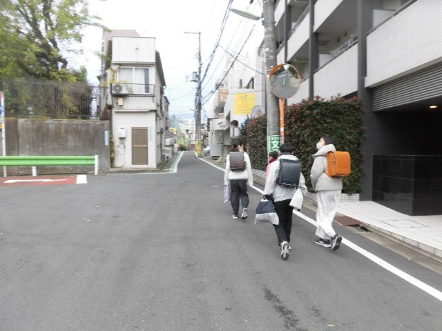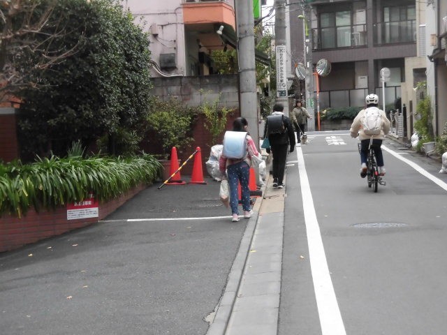 子どもたちの登校する時刻です。今日は北風が強くとても寒く感じます。手や顔など外に出ているところが冷たくなっています。しかし、そんな朝でも子どもたちは元気に登校しています。