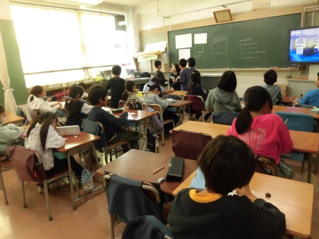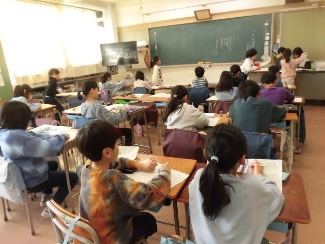 隣クラスでは、国語の課題に一人ひとり取り組んでいました。出来上がった人は先生に見てもらっています。見てもらった人は嬉しそうな顔をしています。