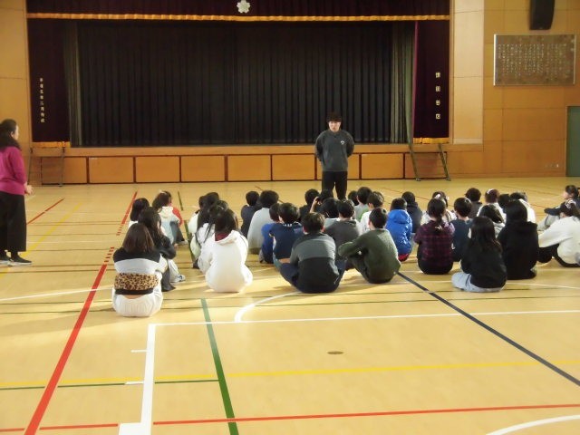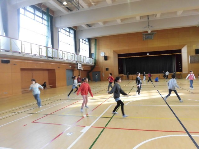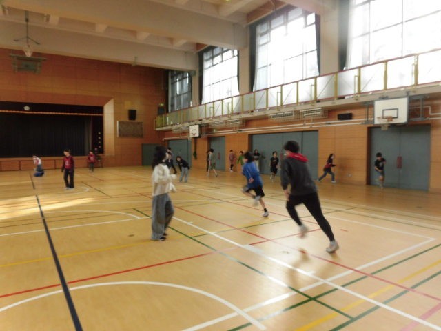 5年生は学年で体育館に集まって学年レクレーションをしていました。はじめはおにごっこです。