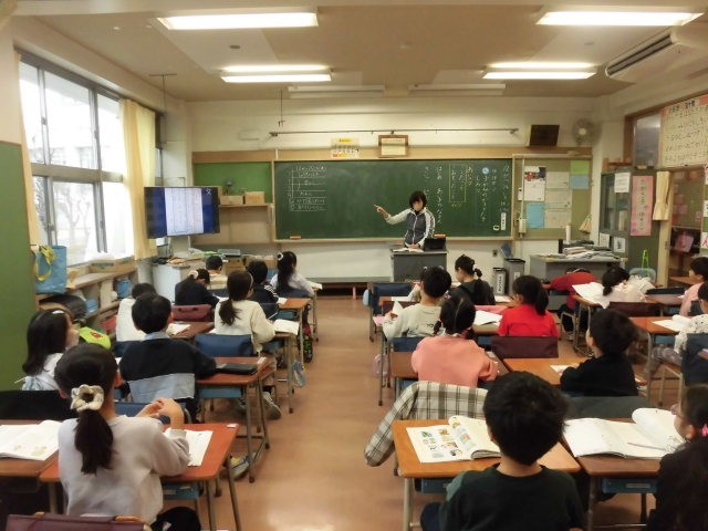 1年生の授業は国語です。手紙の書き方を学習しています。