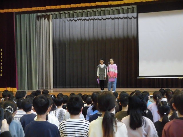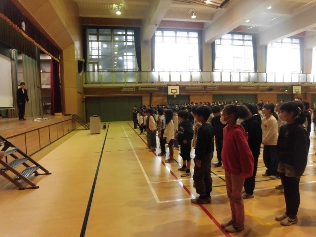 2学期の最後の今日、終業式がありました。3年生代表の人から2学期に頑張ったことの発表がありました。長い原稿をすべて覚え、また、しっかりとし姿勢でとても素晴らしい発表でした。最後に校歌を歌いました。伴奏は6年生がしてくれました。歌っている人たちを引っ張る力強くだけでなく、優しさを感じるとてもすてきな演奏でした。