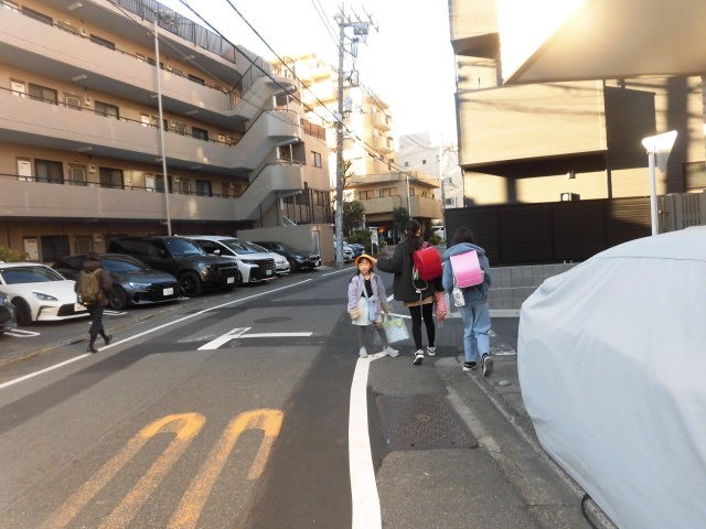 子どもたちが登校してきました。今日はとても寒く、背中を丸めて登校する人がたくさんいます。