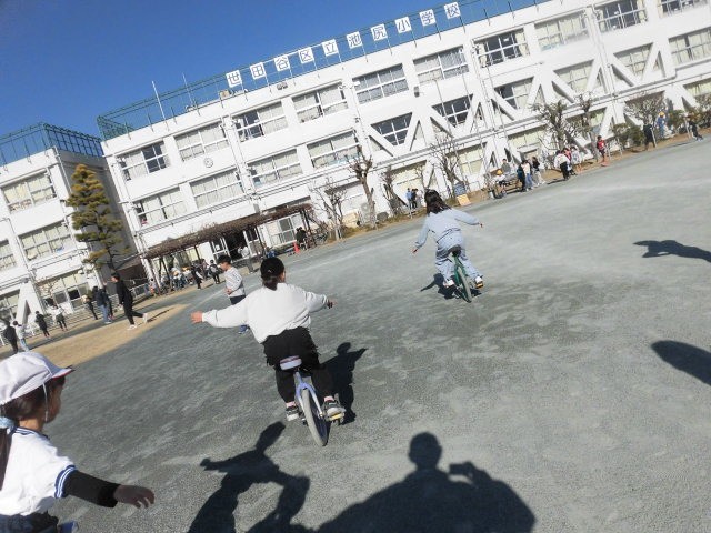 5年生は体育館横でドッジボールをしています。3年生はビオトープに水をたしてくれています。雨が降らないので、水がかなり減っているのです。2年生と一輪車をしたら、あっという間に置いてけぼりになってしまいました。子どもたちはとても上手です。