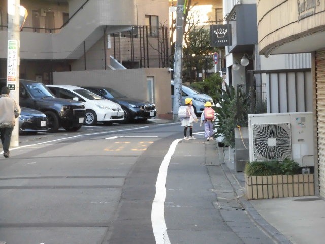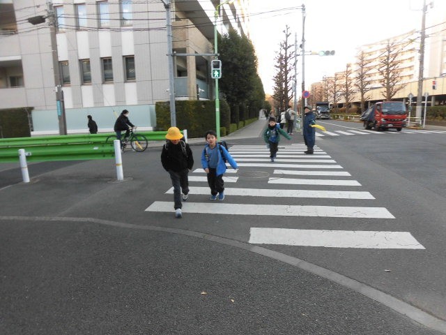 子どもたちが登校してきました。今朝の寒さは昨日よりは少し和らいでいるようです。それでも寒そうに歩いている子どもたちです。