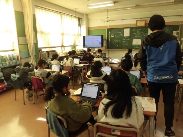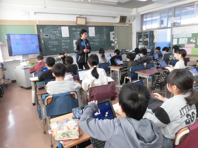 3年生の授業は道徳です。教室に入った時は学習の最後の振り返りをしていました。意見を伝え立っていましたが、振り返りカードの記入になると、子どもたちは静かになりサッと記入を始めました。とても切り替えの早い子どもたちです。