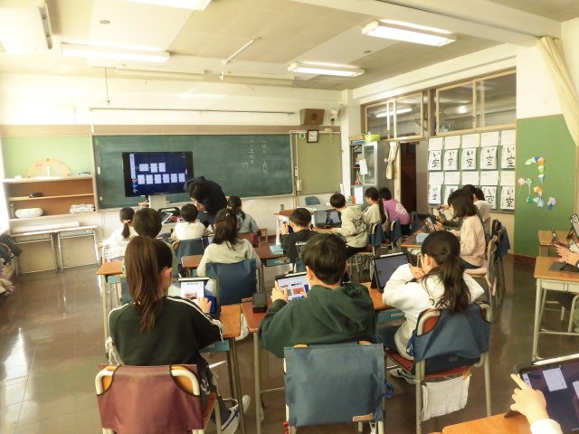 子どもたちはタブレットで詩集のデザインを考えています。どんな詩集になるのでしょう。出来上がったら、見せてもらいます。