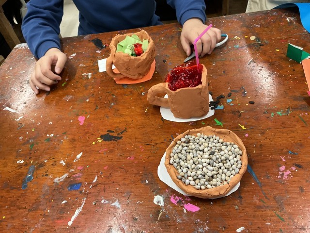 完成した焼き物を綺麗に見せるための、飾り付けてをして展示をします。