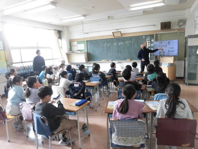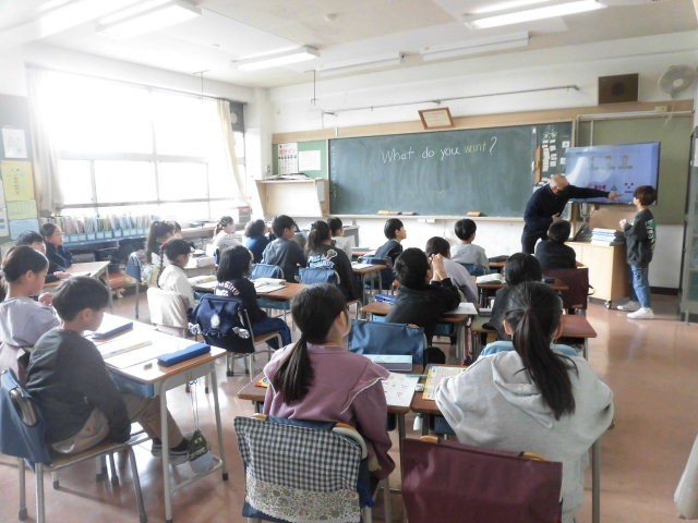 「What do you want」や「How many」などを使って会話をします。友達同士で会話をする前に全体で言葉などの確認をしていました。ALTの先生の発問に一生懸命に答えようとしている子どもたちです。