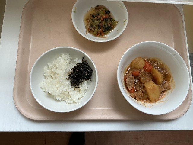 今日は、新メニューの韓国風肉じゃがでした。いつもの肉じゃがにコチュジャンを加えてピリ辛に仕上げましたが子供たちも本当によく食べていました。