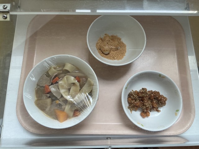 牛乳・ほうとう・大豆とじゃこの甘辛揚げ・白玉きなこ
