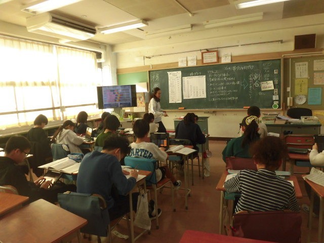 5年生の授業は算数です。グラフの学習です。好きな給食のメニューのアンケートの集計が表になっています。表の種類によって読み取りやすさが変わります。子どもたちは円グラフや帯グラフから何を読み取るのでしょうか。