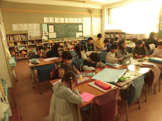 1年生の教室では保育園との交流に向けての準備を行っていました。子どもたちが縦鼻しているお店にはいろいろな種類があります。