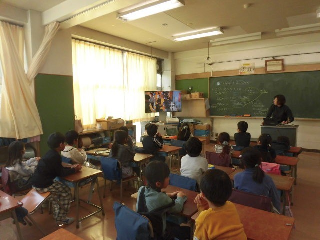 1年生の教室では火曜日に行った保育園との交流の振り返りを行っていました。