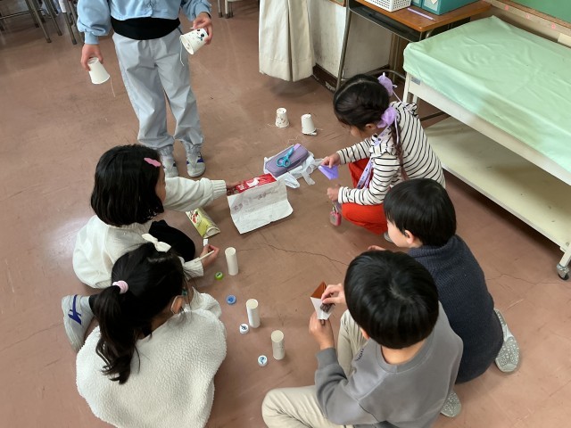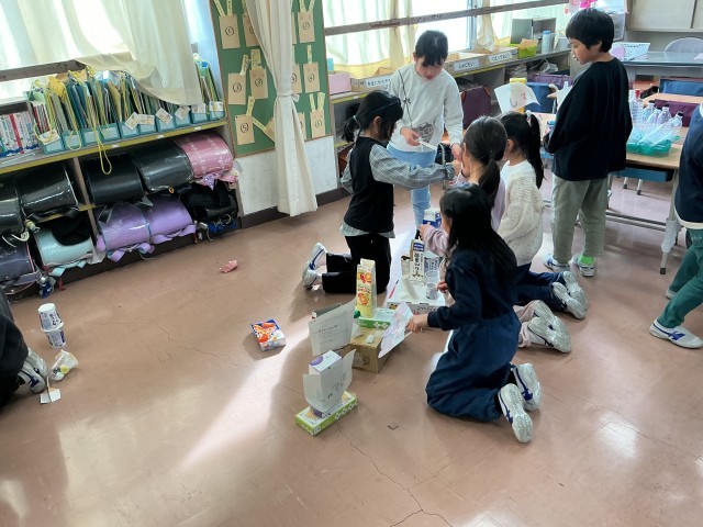 2年生は時間をかけて1年生も遊べる、楽しめるおもちゃを工夫して作りました。