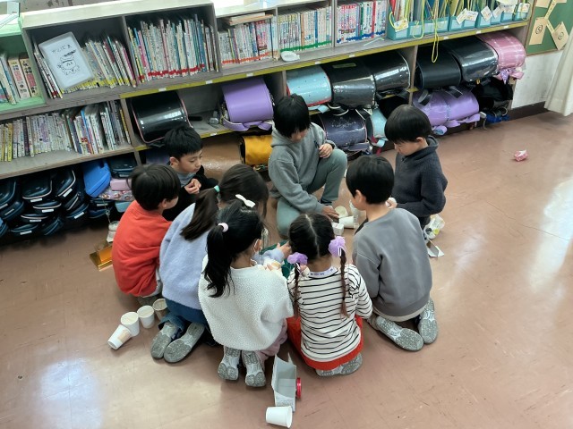 2年生が1年生のために作ったおもちゃで遊ぶ「おもちゃランド」で交流中です。
