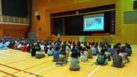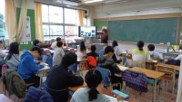 子どもたちが登校してきました。今日は土曜授業日、学校公開です。