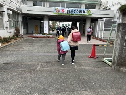 子どもたちが登校してきました。今日は土曜授業日、学校公開です。