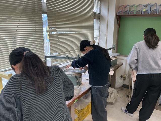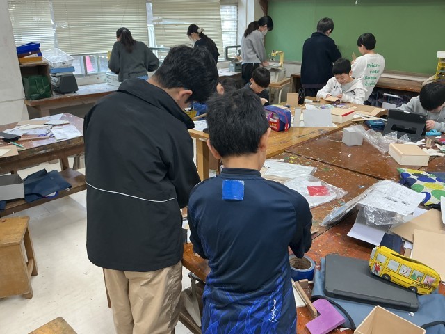 一人ひとり小物入れを作っています。