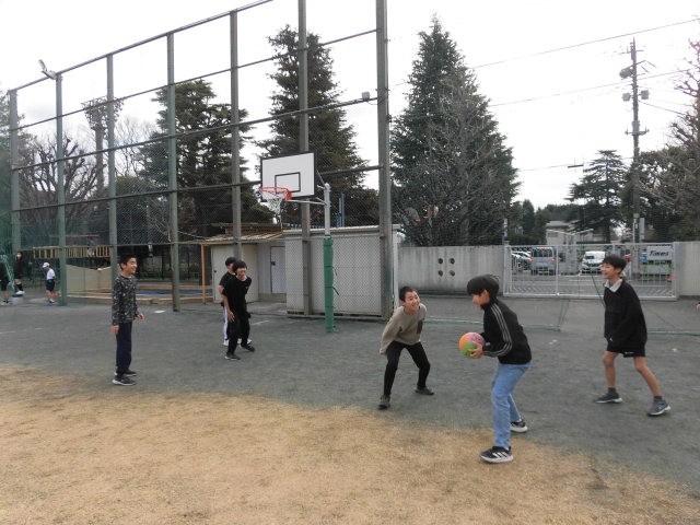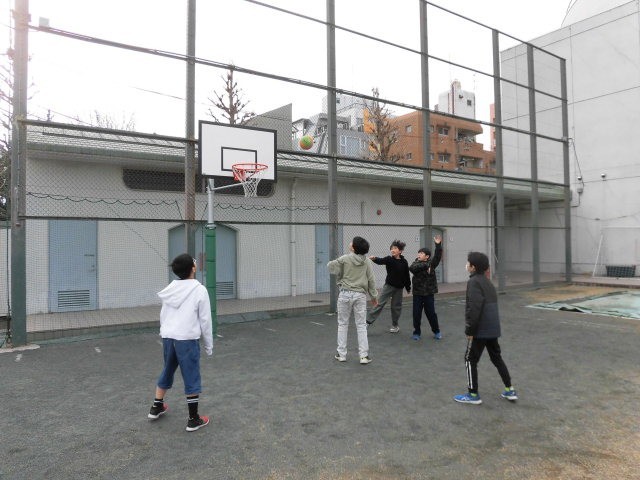 5年生、6年生は楽しそうにバスケットボールをしています。