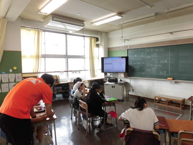 4年生の授業は算数です。少数の倍の学習です。