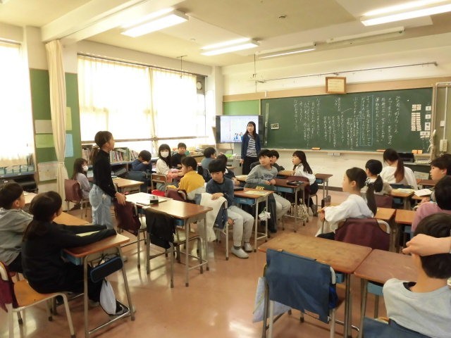 教材を読んで自分の考えを発表しています。友達が発表をするときには、しっかりと発表する人の顔を見て聞いている子どもたちです。後ろから子どもたちのその姿を見ていて嬉しくなりました。