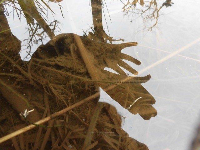 「ビオトープに、カエルの卵があるよ!」とても嬉しそうです。ビオトープに行き、水の中をのぞきました。透明のストローのようなものの中にタピオカのような黒い点が透明なストーローのようなものの中につまっています。すごい長さです。子どもたちはとても嬉しそうです。先日、見つけたカエルが生んだのでしょうか。