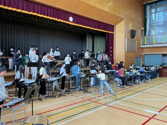 6年生は6年生を送る会で発表する合奏の練習をしています。