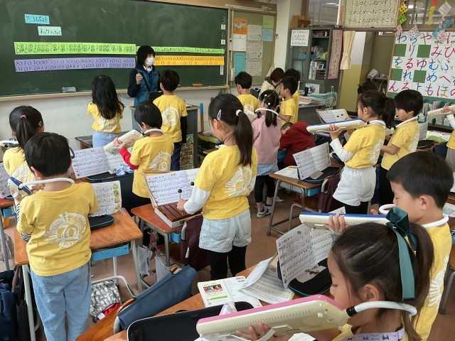木琴、タンブリン、鈴など鍵盤ハーモニカ以外の楽器も使っています。