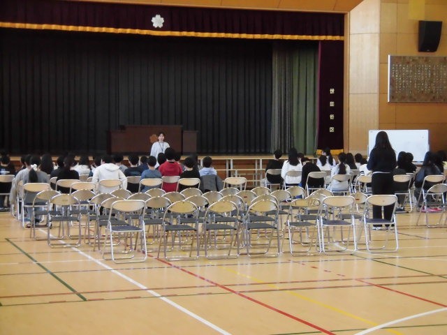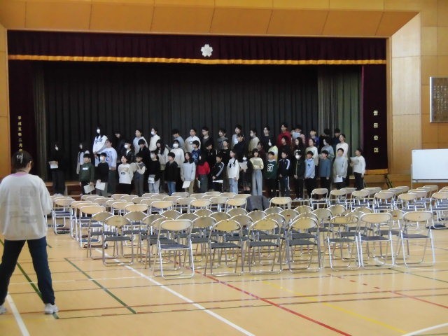 6年生は卒業式の呼びかけの練習をしています。この呼びかけは、卒業式の中でも最後の最後にあります。最後に6年生の思いを会場の人たちに伝えます。言葉も自分たちで考えました。しっかりと自分たちの思いを伝えてほしいと思っています。