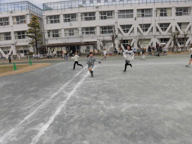 子どもたちが遊んでいます。おにごっこで走り回っている人がたくさんいます。走っているときの子どもたちの表情は、真剣そのものです。