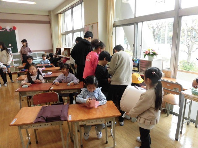 1年生にとってはじめての朝の支度、6年生のおかげで1年生が困ることなく終えることができました。