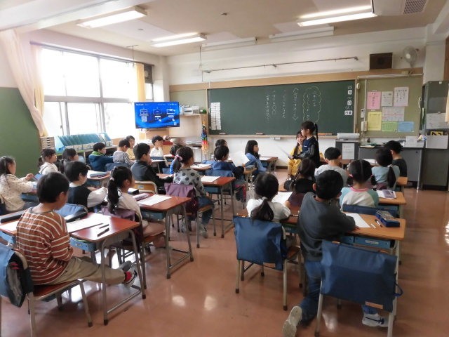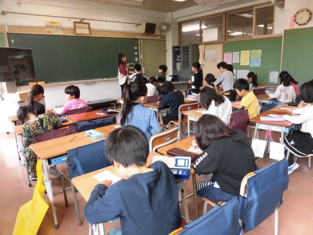 2年生の一つのクラスでは、自分の名前のカードを作っていました。ていねいに自分の名前を書いています。2年生になって初めて書く自分の名前かもしれません。一生懸命な2年生です。