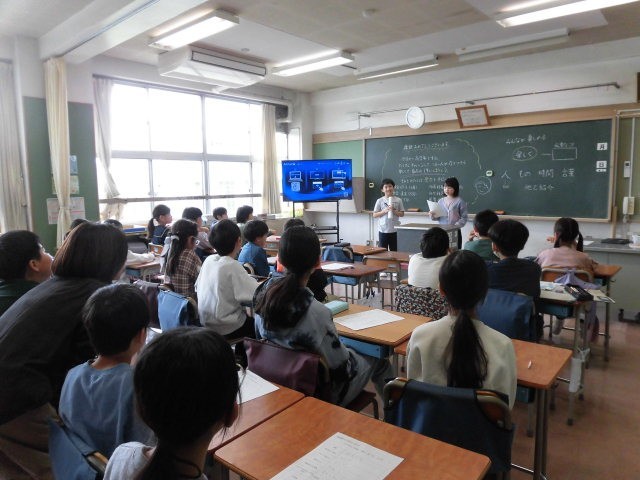 5年生の教室では二クラスとも自己紹介をしていました。