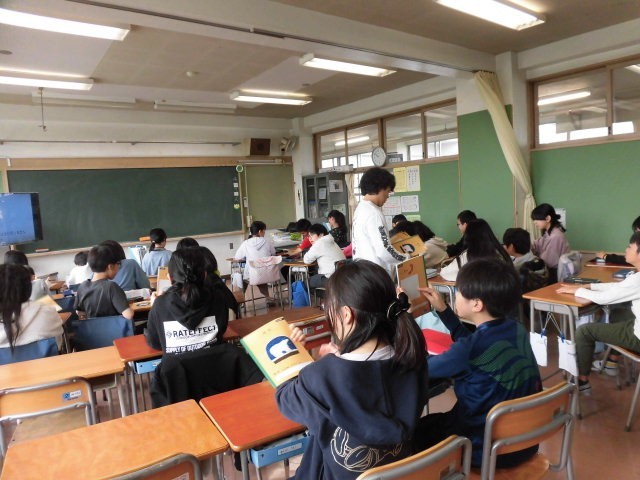 6年生になると教科書もとても厚くなります。教科書を片付けるボックスもパンパンになっています。新しい教科書をもらい気持ちを新たにする6年生です。