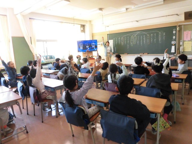 このあと、どの係になりたいかをみんなで決めるようです。お仕事をやりたくてたまらない2年生です。