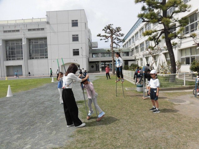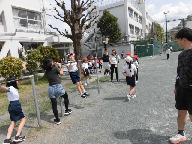ボール遊びや竹馬、一輪車、そして鉄棒などいろいろな遊びをしています。子どもたちが嬉しそうに校庭を走り回る姿を見ると、こちらも嬉しくなります。