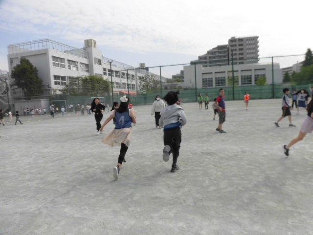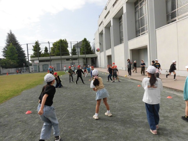 子どもたちはクラス遊びを始めました。おにごっこなどで走り回っている子、ドッジボールをやっている子などクラスごとにそれぞれの遊びをしています。