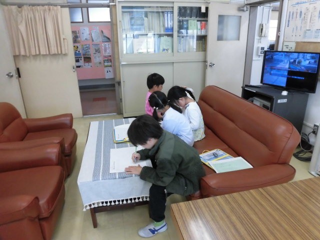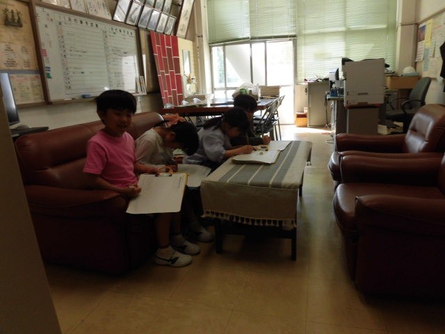 1時間目、校長室に数名の2年生がやってきました。1年生に学校の案内をするための下調べに来たのです。