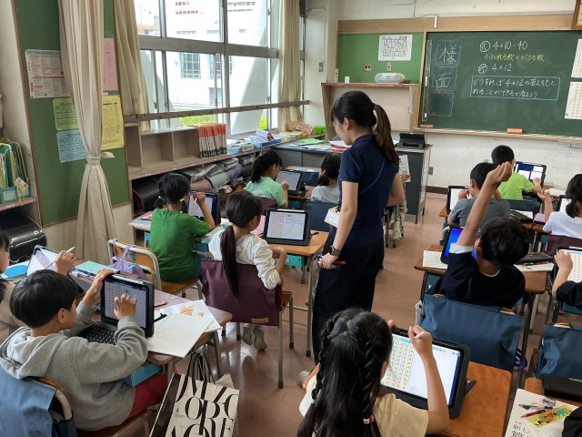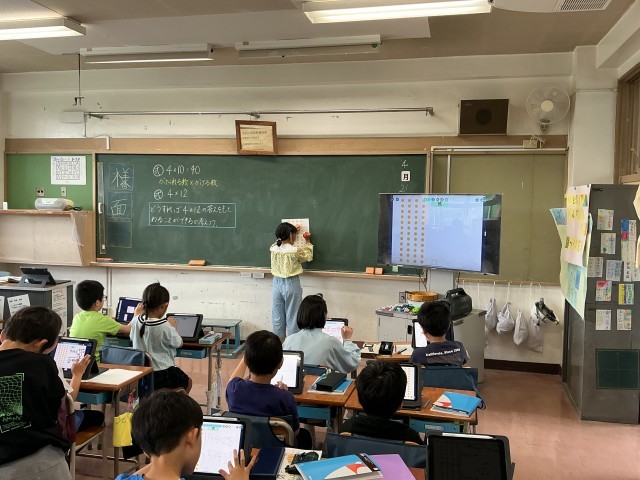 1けた✖️2けたの掛け算の答えを、これまでに学習したことを生かして求めました。