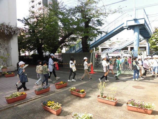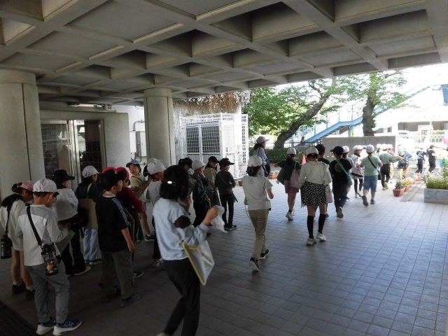 3年生は社会科の学習で、池尻の地域の様子を調べに出かけていきました。